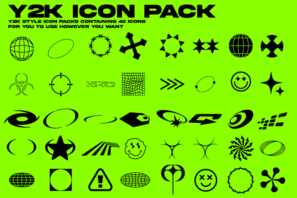 y2k style icon pack containing 40 icons for you to use however you wantyou will have a pack of 40 icons in high resolution PNG format to use however you want